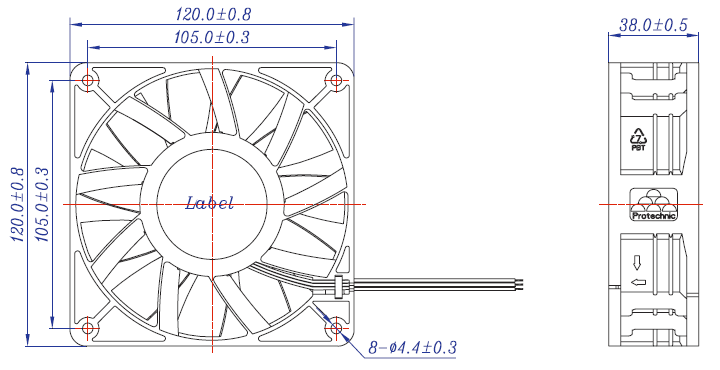 (120×120×38 12V)